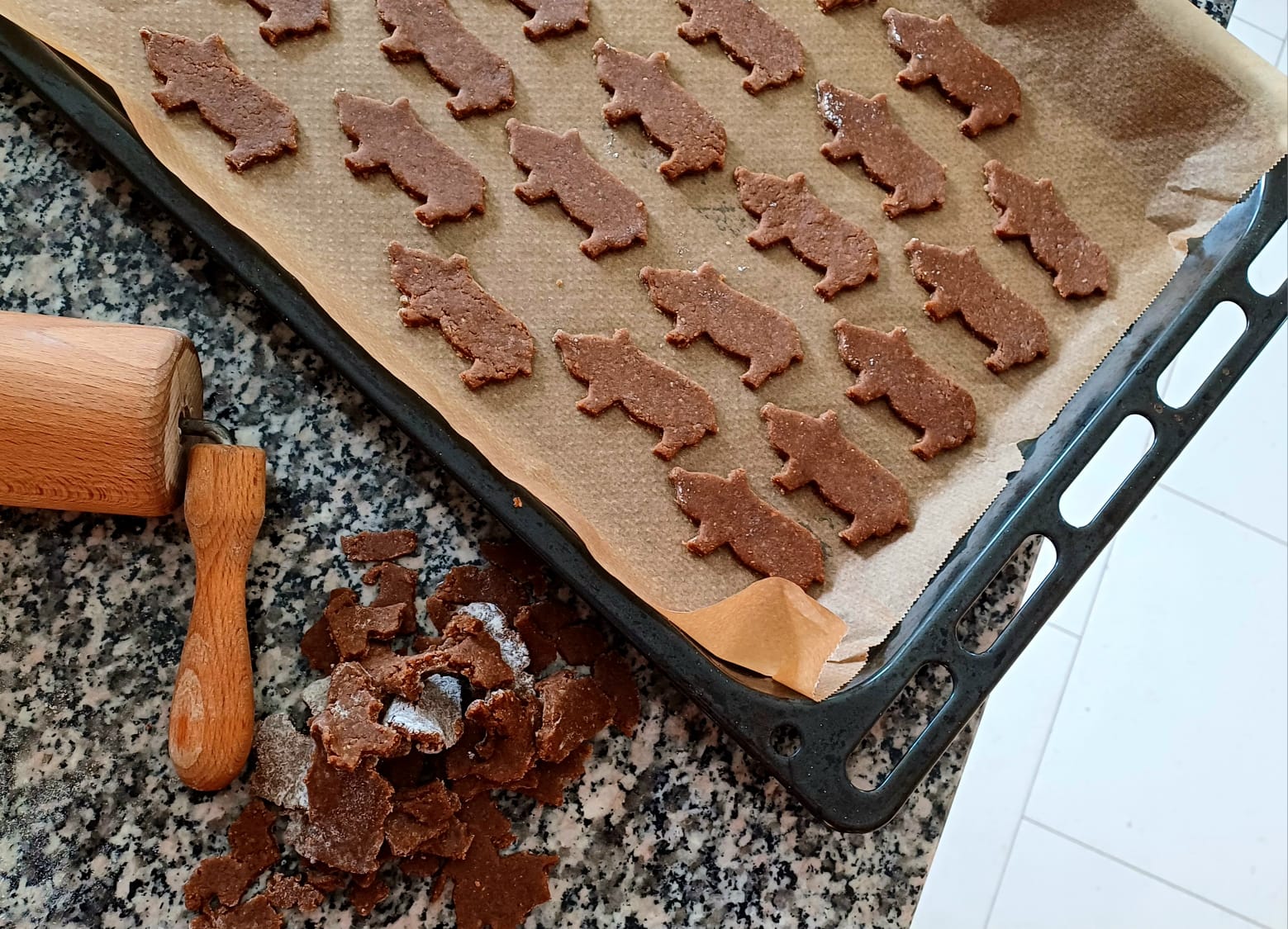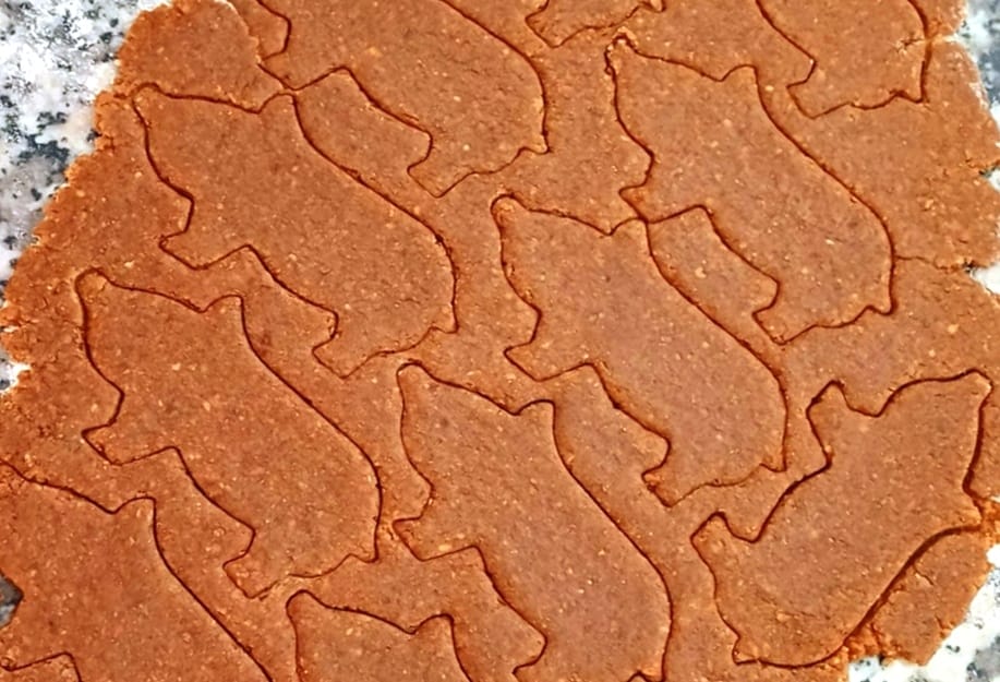 - Den Teig 0,5 cm dick ausrollen und ausstechen