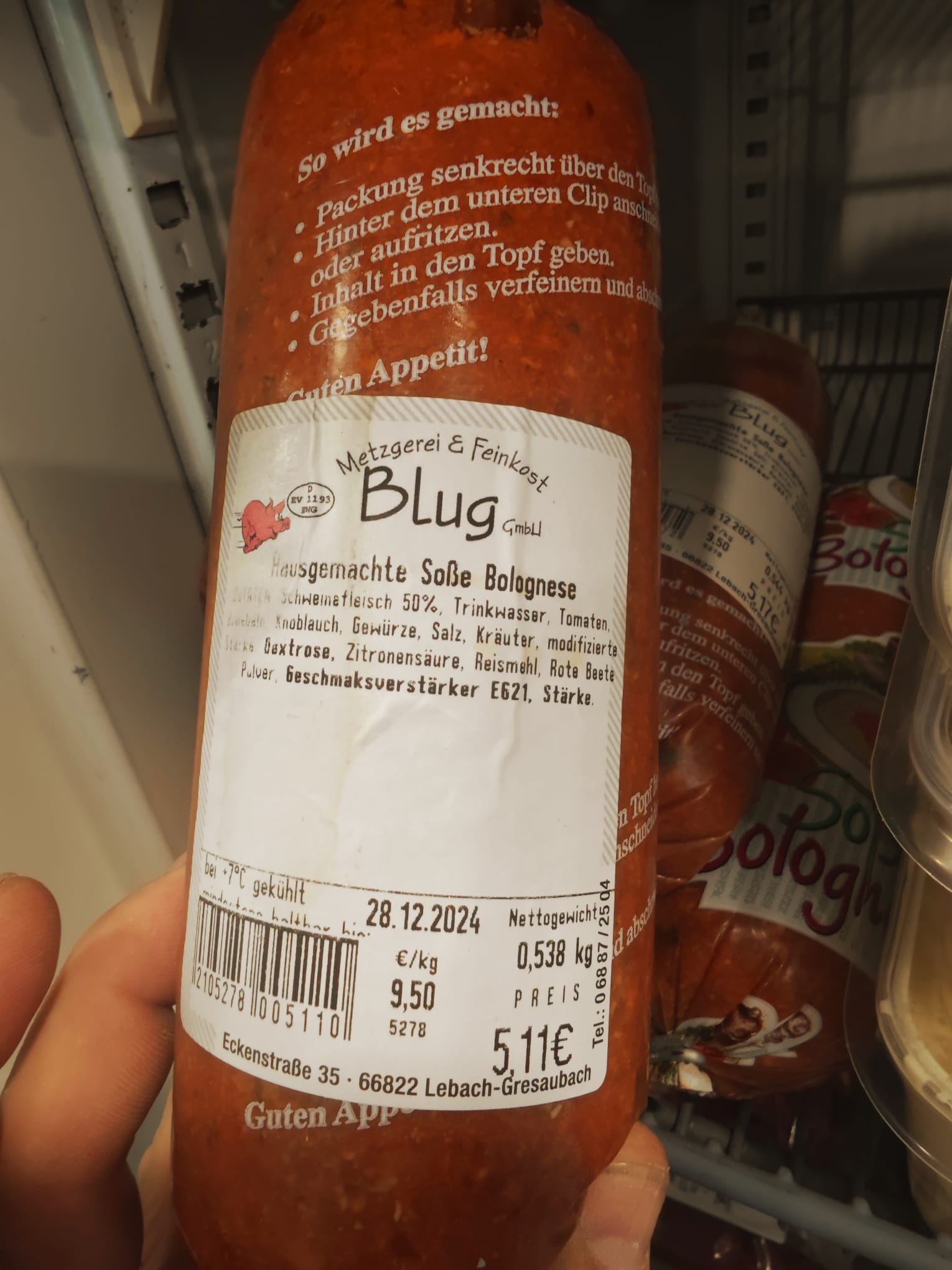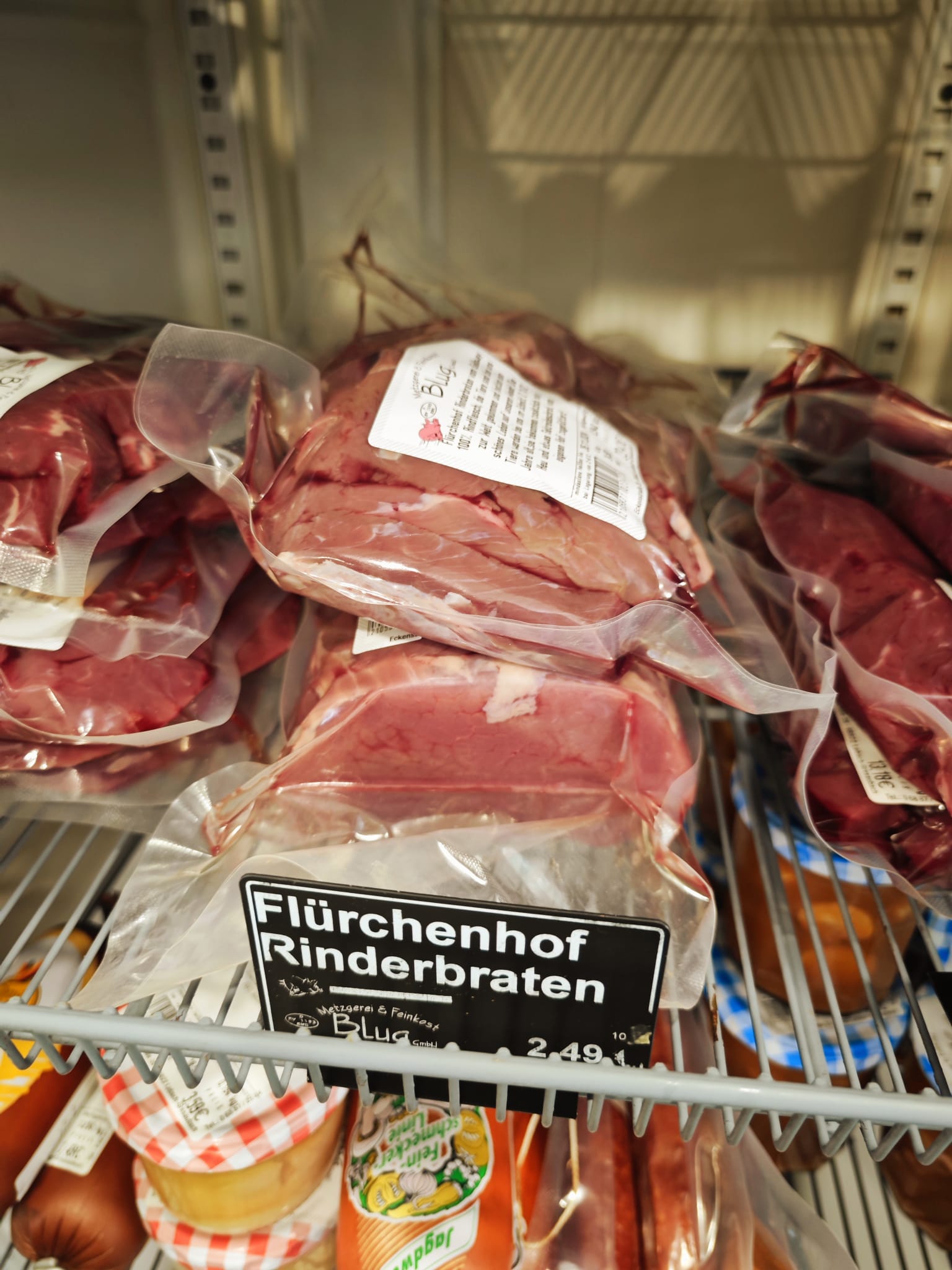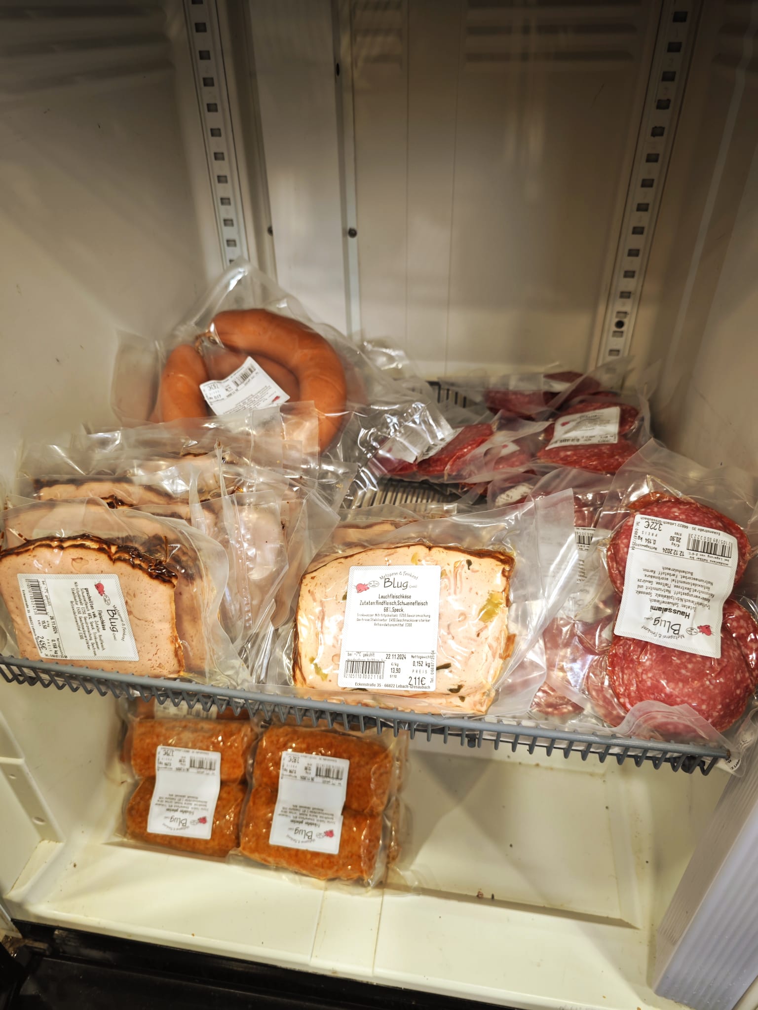 - Gefriertruhe der Metzgerei Blug: Um euch eine noch größere Vielfalt bieten zu können, habe ich eine kleine Gefriertruhe eingerichtet. Besonders praktisch: Produkte mit kurzer Mindesthaltbarkeit wie Hackfleisch sind dadurch immer verfügbar.