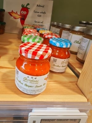 Die ultimativ scharfe Carolina Reaper Chili Sauce: Nichts für schwache Nerven! Diese Sauce bringt echte Feuer-Fans ins Schwitzen und verleiht jedem Gericht einen würzigen Kick.